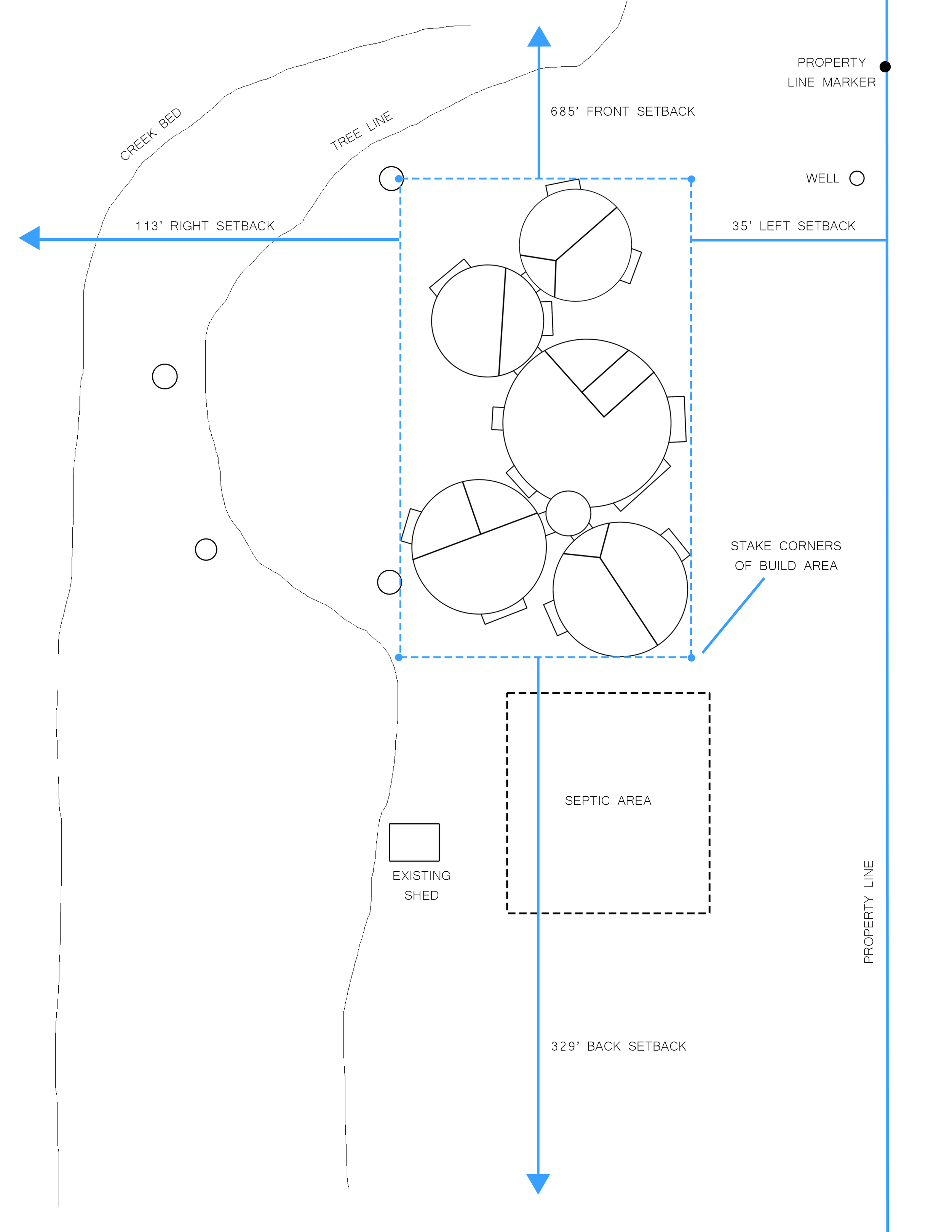 Once we felt confident in all the prep work we did, we set the stakes in our proposed spots and submitted our zoning application. Thankfully our area didn’t give us a difficult time with this unique building style, and our application was approved!